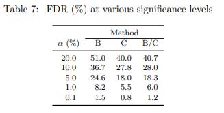 First, from Table 7 above, you can see one way to deal with FDR is to use much stricter criteria for significance. FDR drops quite a bit if for α = 0.01 and α = 0.001. But think about all the failed experiments you’d have demanding such a tight p-value bar. Consider how demoralizing it can be for an engineering team to build and test multiple prototypes only to have most of them thrown away, especially when some might actually be real positive changes.
